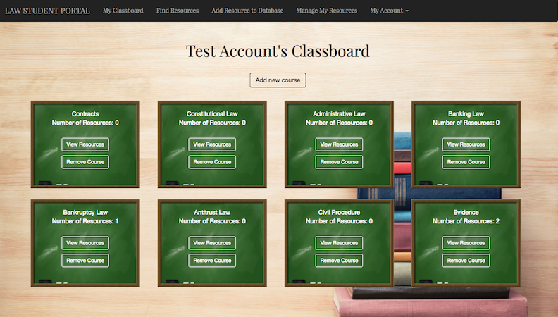 The Law Student Portal is a fullstack JavaScript app. It is a studyguide and resource database meant to help law students prepare for their final exams.